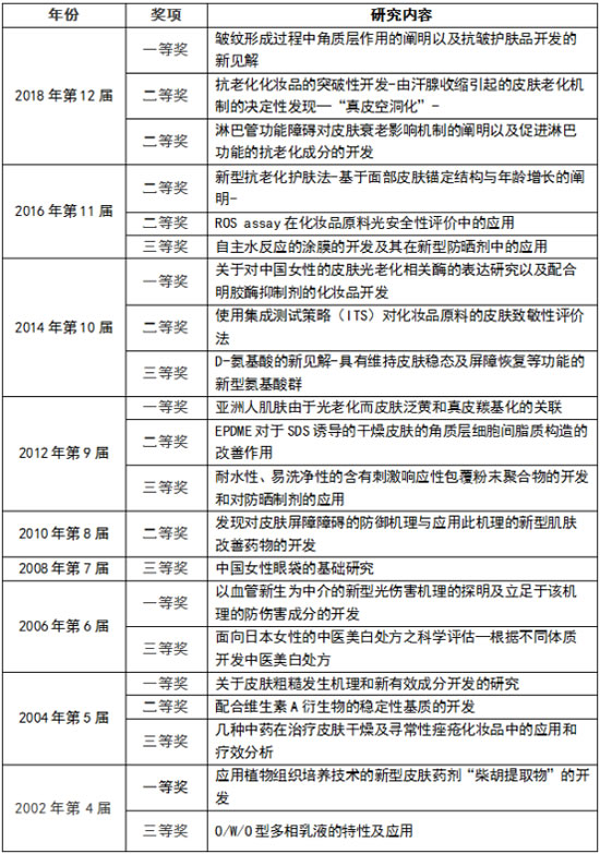 附录:资生堂集团在历年中国香料香精化妆品行业科技大会中的获奖记录